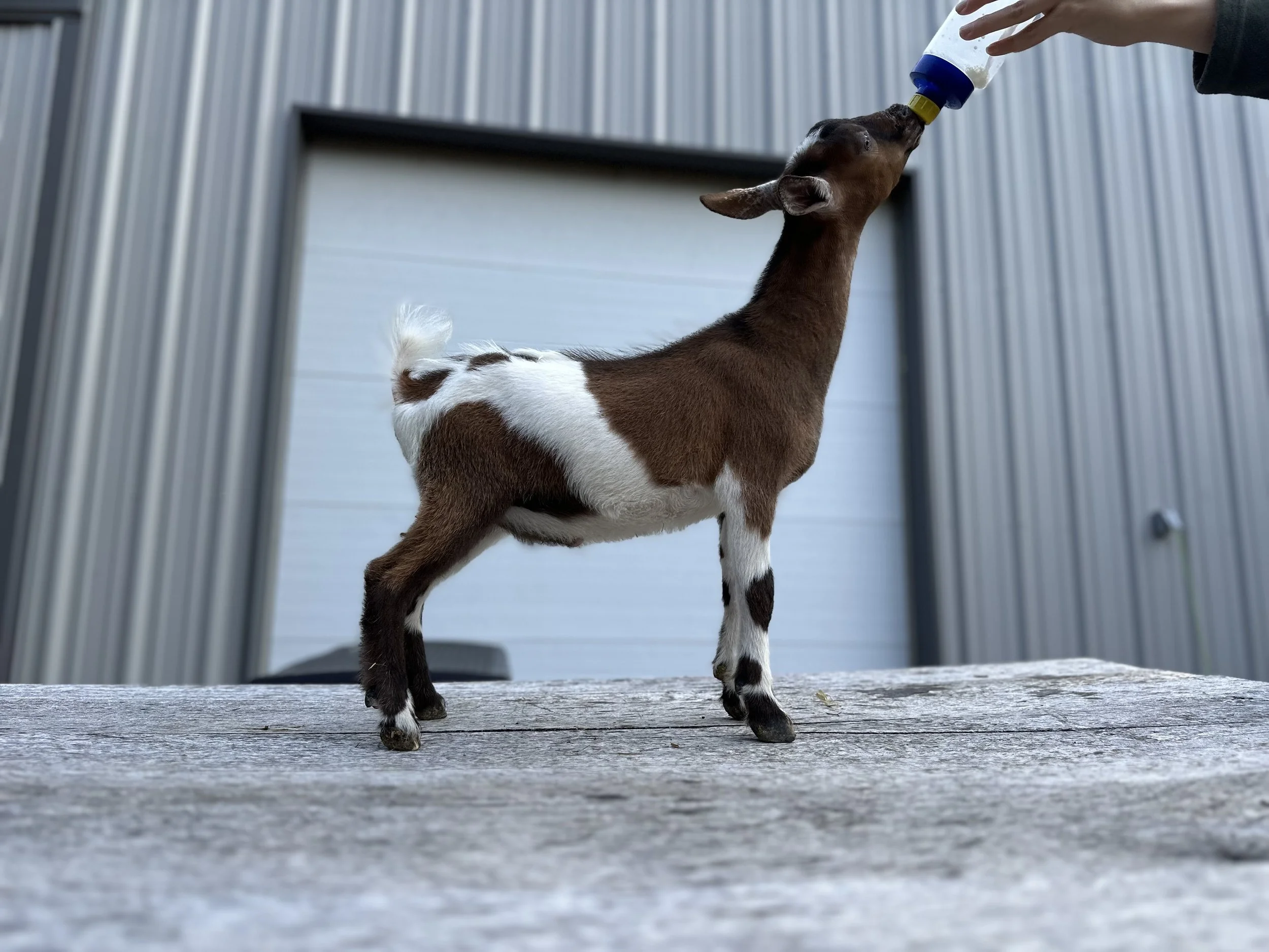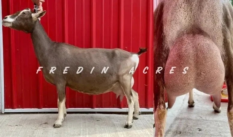 We had the opportunity to bring in a new goat, and I really went back and forth on if I should bring in a new doe or buck. I decided to bring in a new buck, knowing that it could really launch our genetics forward. Katie Fredin is a friend of mine, and her herd is absolutely stunning, both in the show ring and milk pail. We messaged a lot about our herd goals, and who would be the best fit. Guilianni is an absolutely gorgeous buck, and we were thrilled to have a son of his! Gretl needs no introduction, and I would be truly happy with a herd of udders like hers. We just finished our first kidding season (2025) where we used Hans exclusively on every doe, and his kids are gorgeous. They have beautiful front end assemblies, tight shoulders, beautiful rumps both from hips to pins and are wide thurl to thurl. We kept 3 of his girls (as we do each year, we are a small herd!) and are so excited to see his daughters freshen both in our herd and in others!